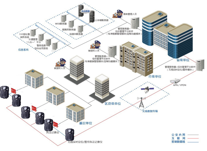 建設4G高清執法記錄儀綜合管理平臺,實現民警在執勤時的全球定位、4G無線圖傳功能;并對視頻和音頻進行現場錄制,將錄制資料通過上傳到系統資料庫,可實現存儲、編目、檢索、管理、考核、研判等功能。