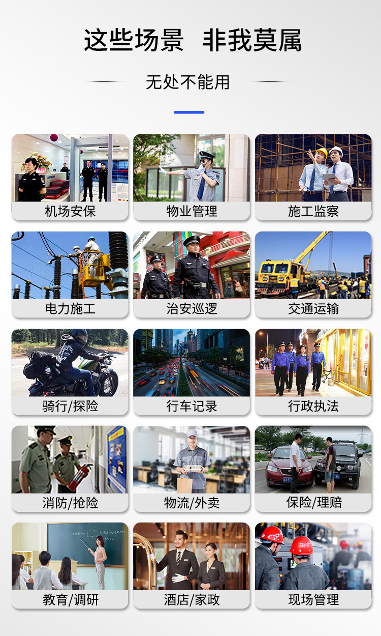 執法記錄儀采用了強咬合力全鋼制背夾,可以根據現場拍攝需要進行多個角度調整,可任意調節執法儀的攝像角度,掛式背夾配有專用配件與執法儀雙重固定,可佩戴于肩前和胸前;牢固耐用,無論是行走或跑動均可使執法儀正對前方目標。