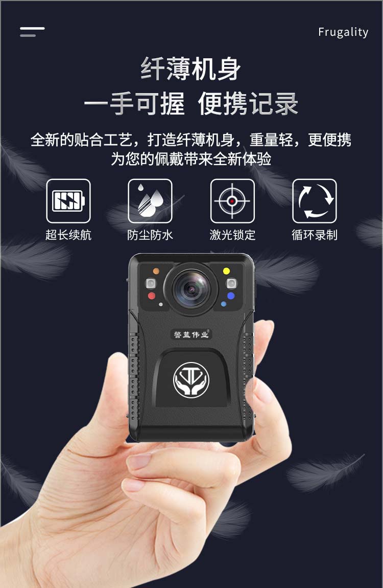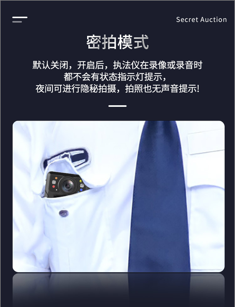 本產品是主要針對執法部門的特殊使用需求,研發生產的新一代最小最輕便全天候執法記錄設備,本產品能夠對執法現場進行動態、靜態的音視頻記錄。特有的紅藍警示燈、遠距離紅外光源和白光燈設計,保證了在夜間全黑環境下的執法記錄效果。是執法部門實現信息化、規范化的有力工具。