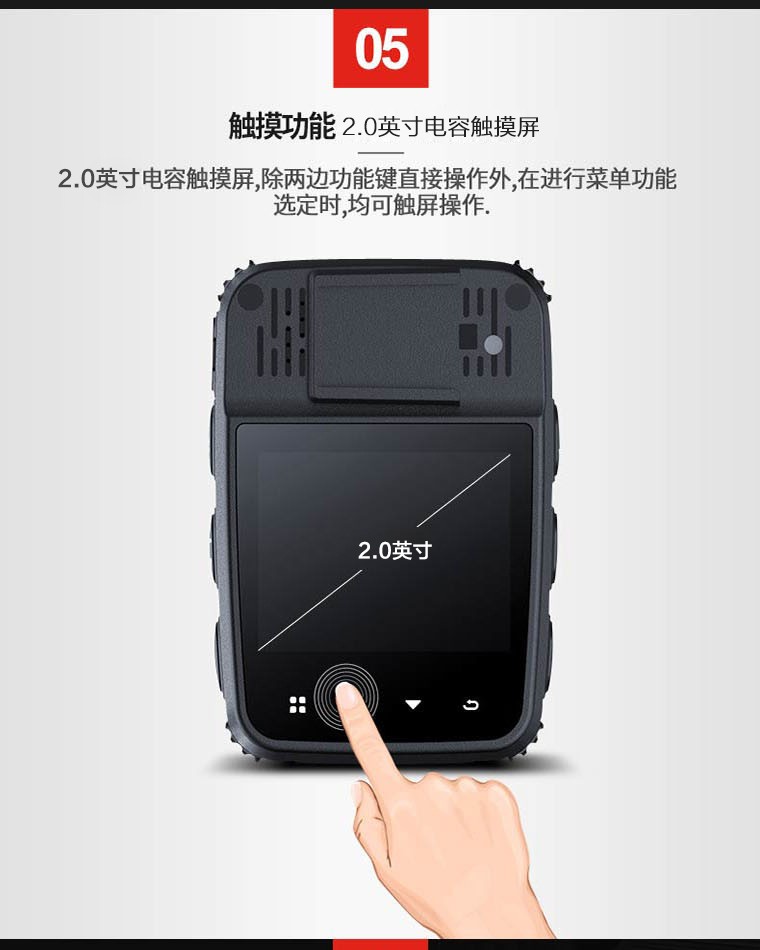 v 觸摸功能,2.0寸電容觸摸屏,除兩邊功能鍵直接操作外,在進(jìn)行菜單功能選定時(shí),均可觸屏操作;